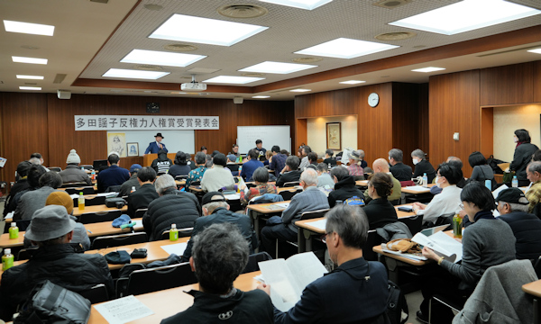 第37回受賞発表会と記念パーティーは2025年12月20日、東京・お茶の水の連合会館に、90名が参加して行われ、受賞された方がたが講演しました。受賞者には、正賞として多田謡子の著作「私の敵が見えてきた」が、副賞として30万円が贈られました。